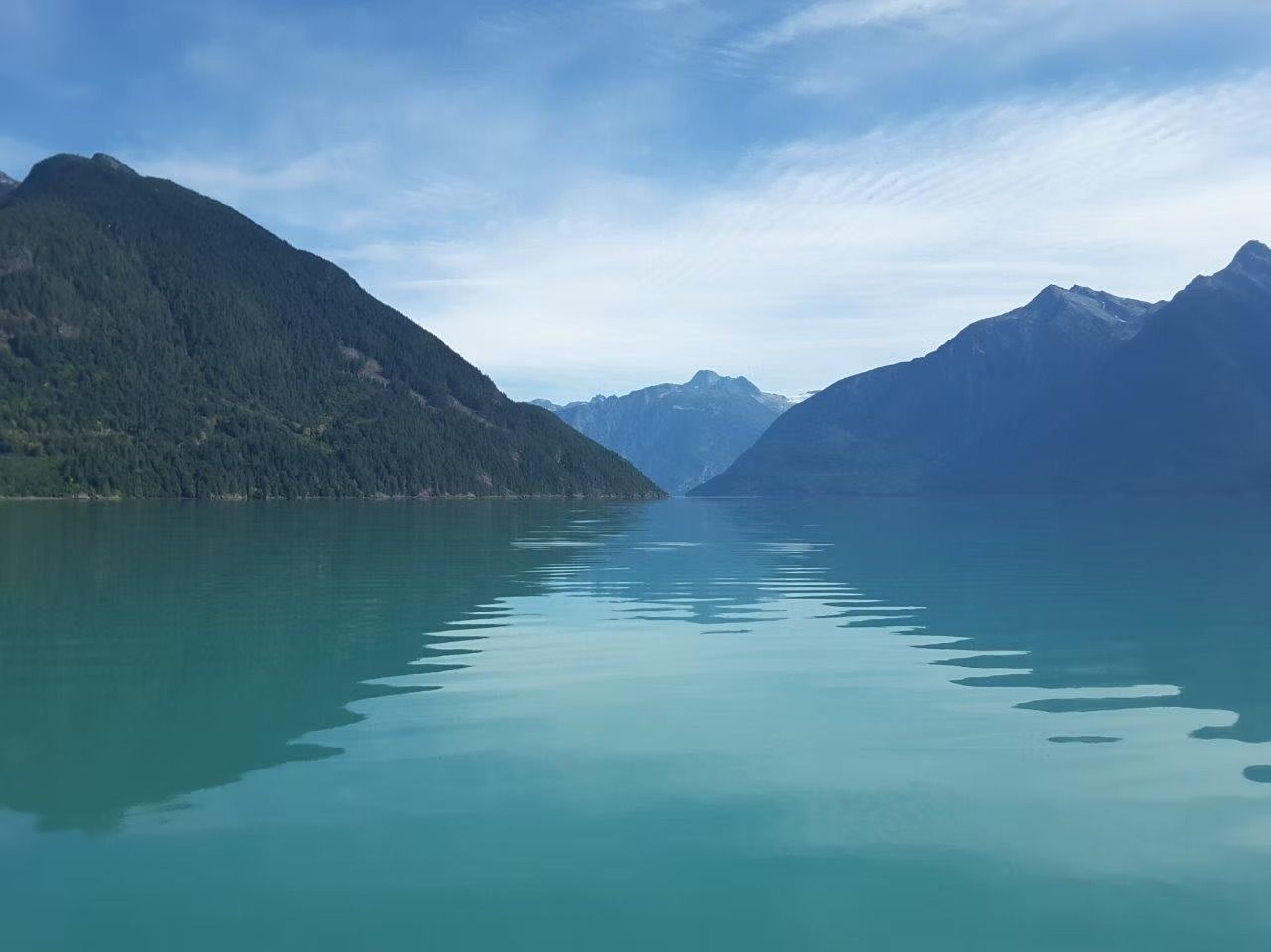 Bute Inlet is one of the principal inlets of the British Columbia Coast. It is 80 km long from the estuaries of the Homathko and Southgate Rivers at the head of the inlet, to the mouth, where it is nearly blocked by Stuart Island, and it averages about 4 km in width. Bute Inlet is in a spectacular wilderness setting and is one of the most scenic waterways in the world. In the upper reaches of the inlet mountains rise 9000 feet above sea level. Bute Inlet is a spectacular wilderness that is visited by very few people. In more recent years tourists are travelling from around the world to view grizzly bears in a natural setting and explore the wilderness of Bute Inlet.